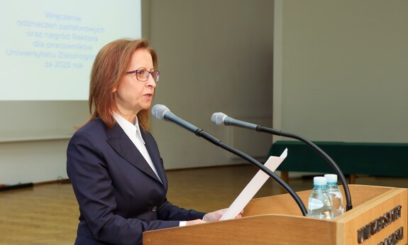 Środową uroczystość poprowadziła prof. dr hab. inż. Justyna Patalas-Maliszewska, która także nie kryła uznania dla uhonorowanych pracowników Uniwersytetu Zielonogórskiego. - To jest ogromny wysiłek na rzecz działalności dydaktycznej ze strony osób nagrodzonych. Dzisiaj przyznane zostały między innymi nagrody za uzyskanie tytułu profesora, stopnia doktora habilitowanego i doktora – są to awanse, do których wszyscy dążymy. Szczególne gratulacje i serdeczności przesyłam do tych osób, które przyczyniły się do rozwoju jakości działalności naukowej Uniwersytetu Zielonogórskiego. Doskonałość dydaktyczną realizujemy również dzięki Państwa wielkiemu trudowi i wysiłkowi – dziękowała Prorektor ds. nauki i współpracy z zagranicą UZ.