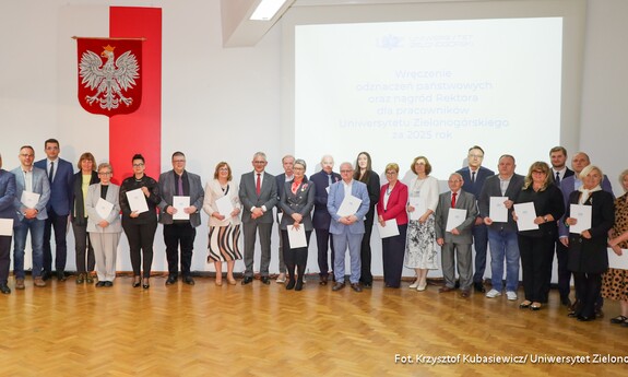To była wyjątkowa uroczystość. Ponad sześćdziesięciu pracowników Uniwersytetu Zielonogórskiego w środę 22 kwietnia br. otrzymało odznaczenia państwowe oraz resortowe. Ponadto wręczone zostały także nagrody Rektora UZ. W sumie za rok 2025 docenionych zostało ponad stu siedemdziesięciu pracowników naszej uczelni - zarówno naukowych, jak i administracyjnych.