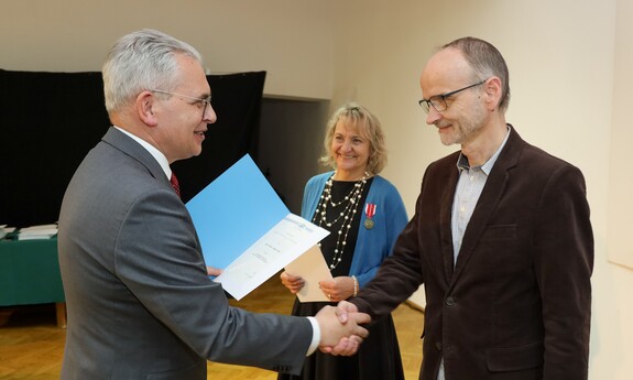 Medalem Złotym za Długoletnią Służbę uhonorowanych zostało czternastu pracowników Uniwersytetu Zielonogórskiego, natomiast Medal Srebrny za Długoletnią Służbę przyznano siedemnaściorgu pracownikom naszej uczelni. Nie zabrakło także Medali Brązowych za Długoletnią Służbę, które otrzymało czterech pracowników UZ. - Takie odznaczenia otrzymują osoby, które zrobiły coś ważnego. Ten medal pokazuje, że zostałam zauważona. Ktoś mnie docenił i to jest najważniejsze. Jestem profesorem tytularnym, więc osiągnęłam wszystko, co można w działalności akademickiej. Otworzyłam trzy nowe kierunki na ówczesnym Wydziale Humanistycznym, które istnieją do dziś. Przyjęłam też kilkunastu naszych absolwentów, którzy zrobili doktoraty. Nasz Instytut Filozofii jest rozpoznawalny, nie jesteśmy białą plamą na mapie uniwersytetów - mówi odznaczona Medalem Złotym za Długoletnią Służbę prof. dr hab. Lilianna Kiejzik z Instytutu Filozofii UZ. - Każde wyróżnienie jest zawsze miłe dla pracownika. Srebrny Medal za Długoletnią Służbę to dla mnie przede wszystkim wyraz uznania za lata pracy i zaangażowania w działalność na uniwersytecie. Traktuję to wyróżnienie jako zaszczyt, ale także jako motywację do dalszej pracy, dzielenia się wiedzą i wspierania kolejnych pokoleń studentów - dodaje odznaczony Medalem Srebrnym za Długoletnią Służbę dr Paweł Szudra z Instytutu Nauk o Zarządzaniu i Jakości UZ.